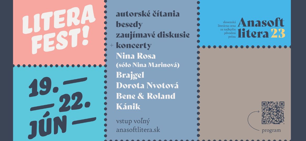 Bratislava. 13. 6. 2023. V Bratislave sa už tradične koncom júna koná festival spojený s literárnou cenou za najlepšiu slovenskú prózu Anasoft litera nesúci názov litera fest. Od pondelka 19. júna do štvrtka 20. júna opäť predstaví desať nominovaných autoriek a autorov. V streamovaných diskusiách sa pokúsi nájsť odpovede na aktuálne témy v oblasti literatúry a literárneho prekladu. Na festivale nebudú chýbať koncerty interpretov, ktorým záleží nielen na hodnotnej hudbe, ale aj kvalitnom texte.